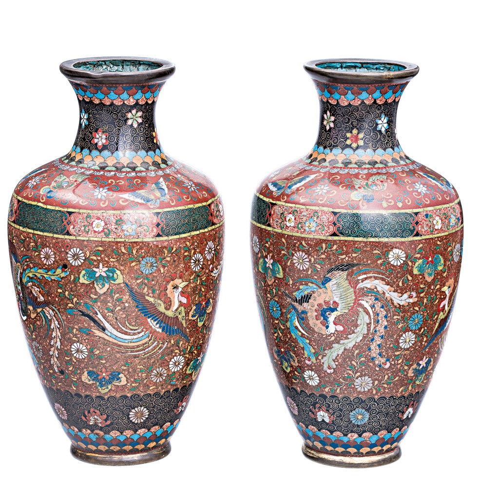 Kína, 19. sz. második fele, bronz, színes, csillámos rekeszzománc díszítéssel, m: 31 cm