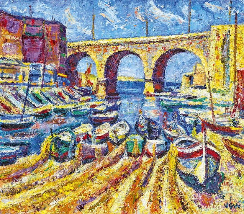 Vén Emil: Dél-Francia táj (Marseille-i halászkikötő viadukttal)