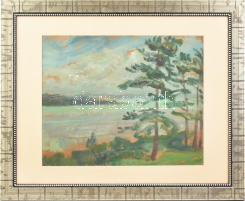 Vén jelzéssel: Vízparti táj. Olaj, karton. Üvegezett, dekoratív fakeretben, 30,5×37,5 cm<a href="https://www.darabanth.com/hu/gyorsarveres/436/kategoriak~Festmenyek-es-grafikak/Festmenyek-es-grafikak-jelzessel-jelzes-nelkul~500002/Ven-jelzessel-Vizp