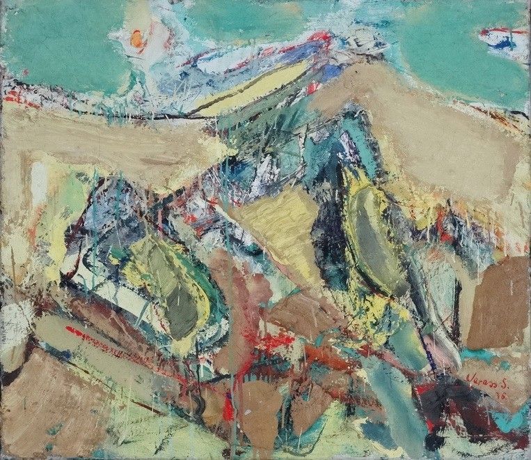 Veress Sándor László (1934): Dombos táj napkoronggal, 1976