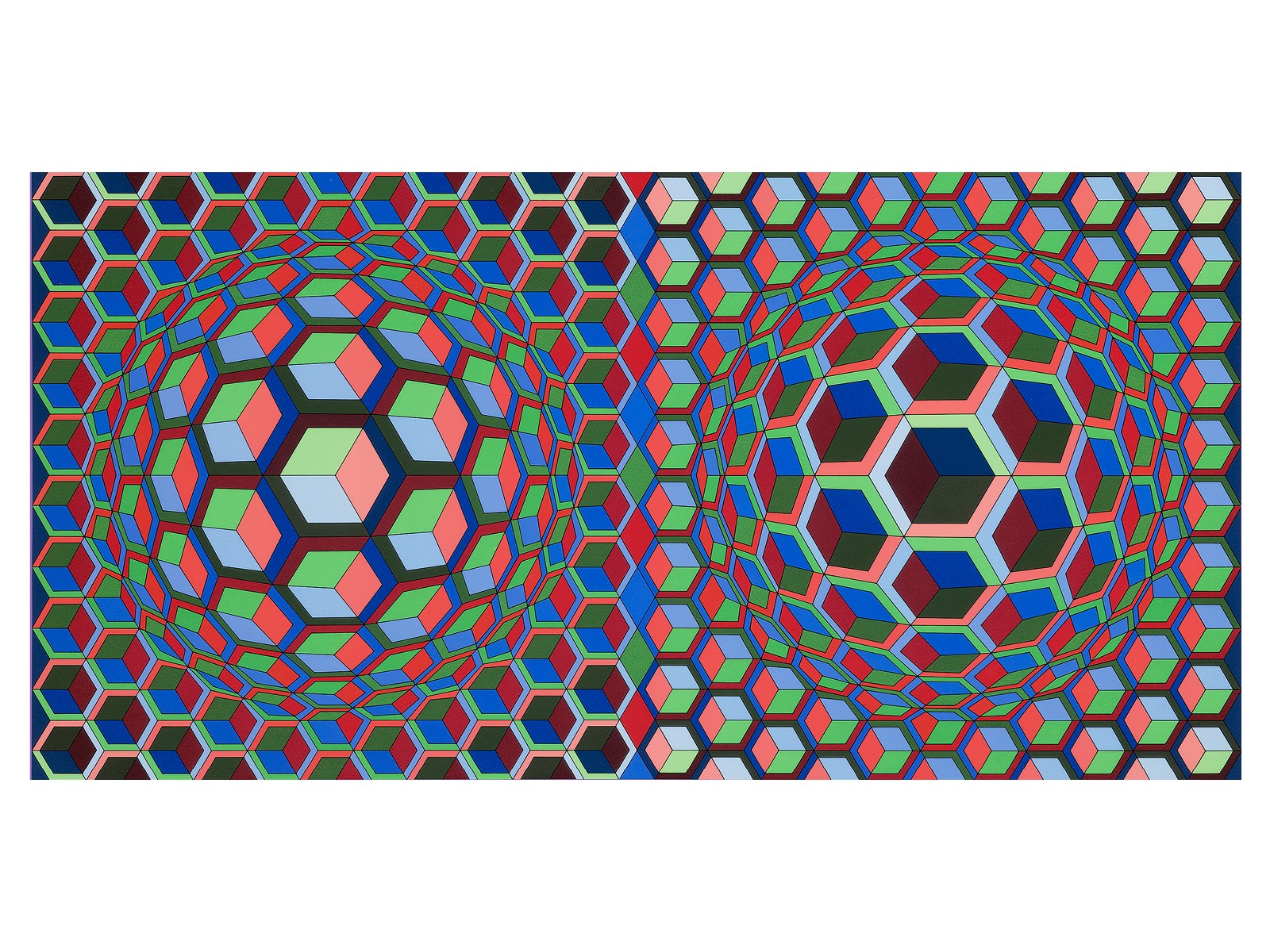 Victor Vasarely (Pécs, 1906 – Párizs, 1997) Semiha Szitanyomat, papír 48 × 90 cm Jelezve jobbra lent: Vasarely Sorozatszám: 139/250