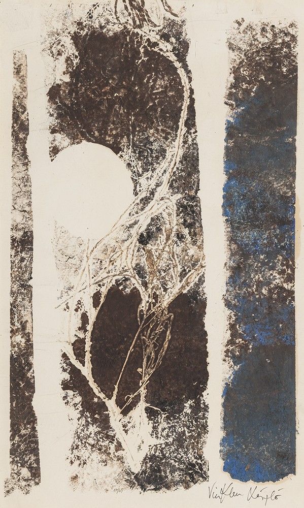 Kikiáltási ár: 95 000 FtMartyn Ferenc (Kaposvár, 1899 – Pécs, 1986) Léda emléke, 1977 Szerigráfia, papír 410 × 332 mm Jelezve középen lent: CV/43 Jelezve jobbra lent: Martyn 1977