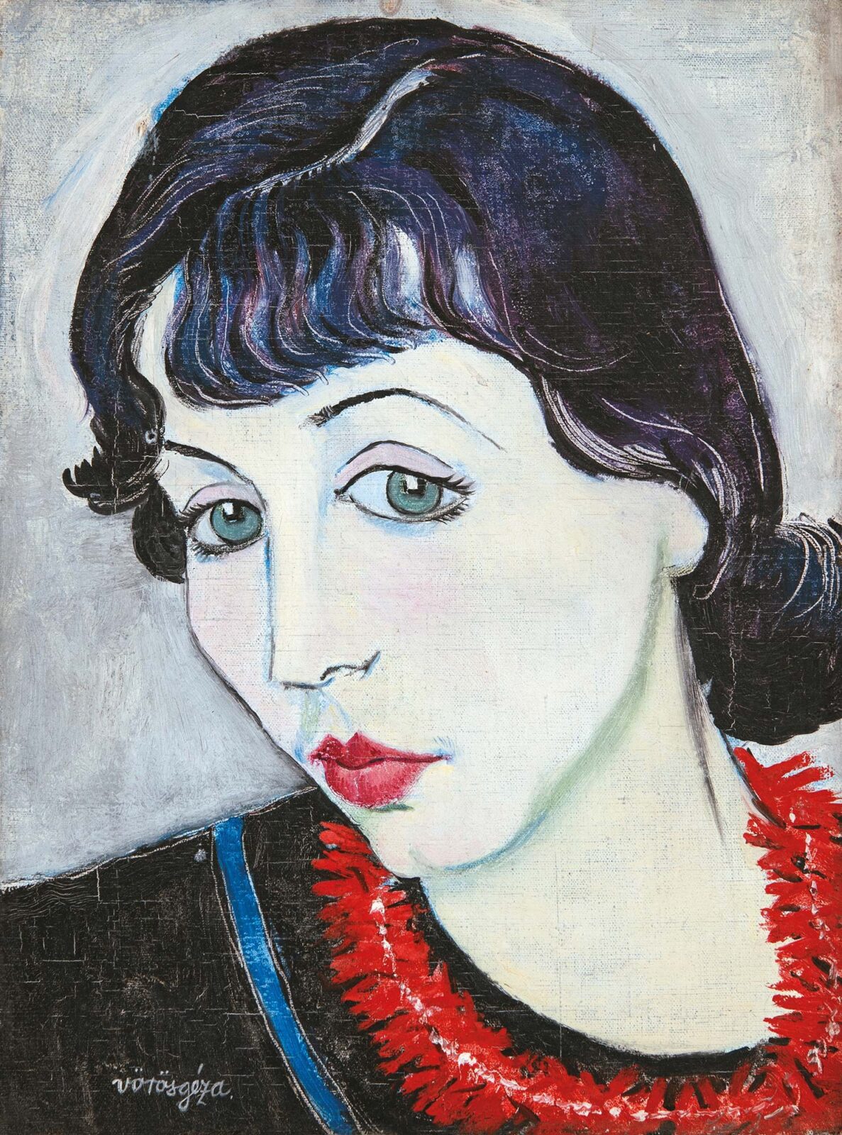 Vörös Géza (1897-1957): Fiatal nő korall nyakdísszel, 1930