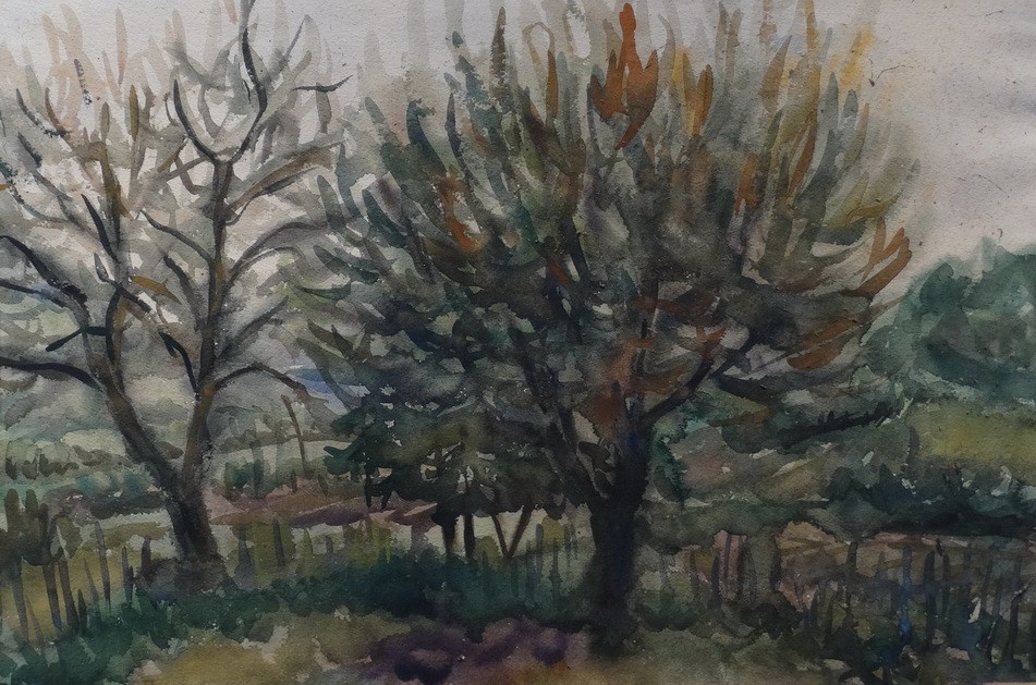 Weisz Zsuzsanna (1925 – 2017): Gyümölcsösben tavasszal, Szigliget, 1983