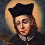 XIX. századi, feltehetően osztrák festő: Szent. Olaj, vászon. Dublírozott. Jelzés nélkül. Csodálatos, régi fakeretben, minimális felületi sérülésekkel. 67X56 cm