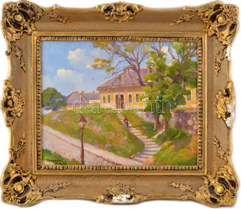 Zsuppán jelzéssel: Budai részlet, 1931. Olaj, vászon. Dekoratív, sérült fakeretben, 35×44,5 cm<a href="https://www.darabanth.com/hu/gyorsarveres/435/kategoriak~Festmenyek-es-grafikak/Festmenyek-es-grafikak-jelzessel-jelzes-nelkul~500002/Zsuppan-jelz