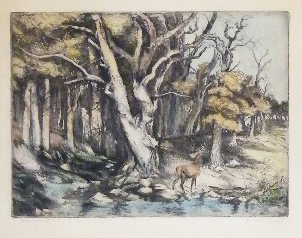 akvarellel színezett rézkarc, jjl., keretben, 29 x 39 cm