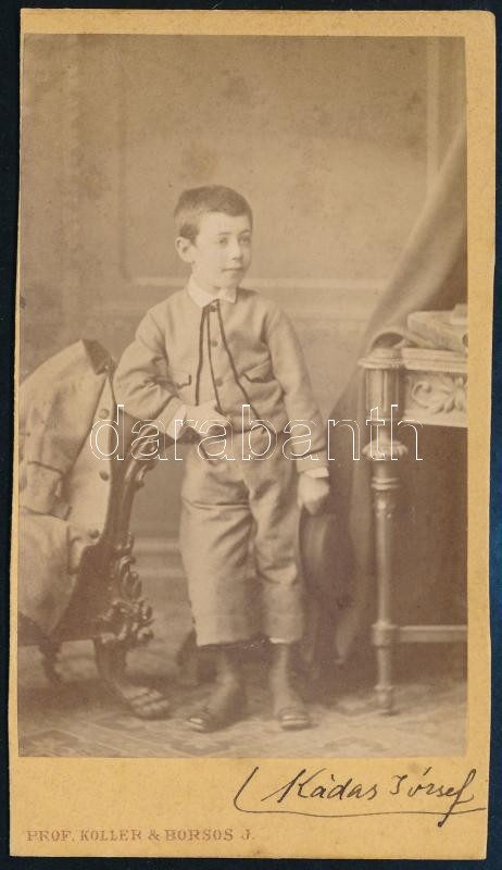 1875 Kádas József portréja Koller és Borsos budapesti műterméből. Vizitkártya.