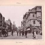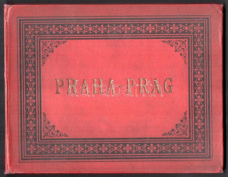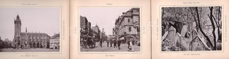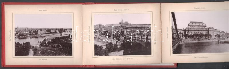 1891 Prága látnivalóit bemutató leporelló, több nyelven feliratozva, 16 db fotó, 8,5×10,5 cm / Prague leporello with 16 photos