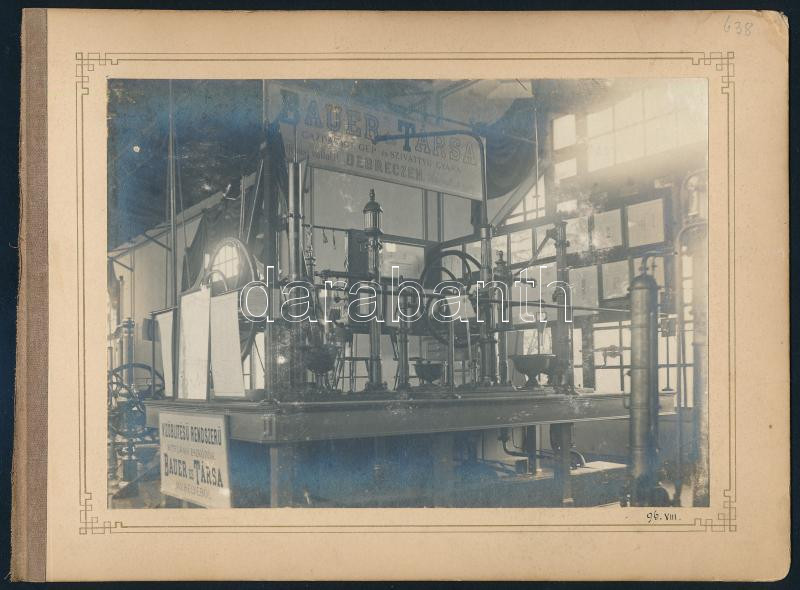 1896 A millenniumi kiállítás egyik tablója Bauer és Társa gazdasági gép és szivattyú gyár a Debrecen vízöblítéses rendszerű kútfúrási eszközök fotó album lapon 20x14cm<a href="https://www.darabanth.com/hu/nagyaukcio/40/kategoriak~Mutargy-szobor-papi