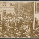 1897 A soproni Széchenyi szobor leleplezésének fotója, a fotón a kormányt képviselő Perczel Dezső (1848-1913) szabadelvű párti politikus, belügyminiszter, keményhátú fotó Stagl Ferenc soproni műterméből, a hátoldalon feliratozva, 11×16