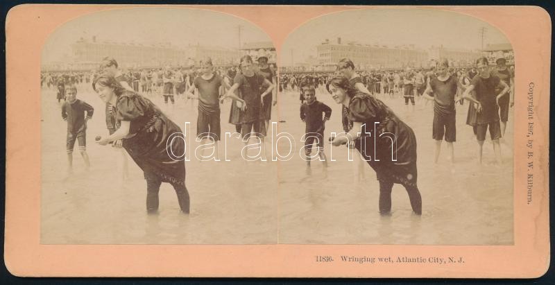 1897 Sztereófotó fürdőzőkről, feliratozva, datálva, B.W. Kilburn jelzéssel, 8,7×17,5 cm