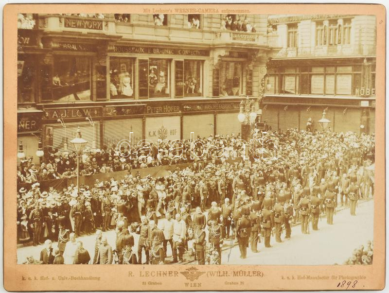 1898. szeptember 17. Wittelsbach Erzsébet (Sisi) magyar királyné temetési menete, utcai felvétel, a várakozó tömeg és katonák, keményhátú fotó, R.Lechner Wien, 18×24 cm<a href="https://www.darabanth.com/hu/nagyaukcio/40/kategoriak~Mutargy-szobor-pap