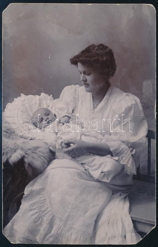 1907 Baja, nő gyermekével, fotólap, sarokhiánnyal, 14×9 cm<a href="https://www.darabanth.com/hu/gyorsarveres/424/kategoriak~Fotomuveszet/Foto~500021/1907-Baja-no-gyermekevel-fotolap-sarokhiannyal-14C3979-cm~II2699811/?utm_source=affiliate&utm_medium