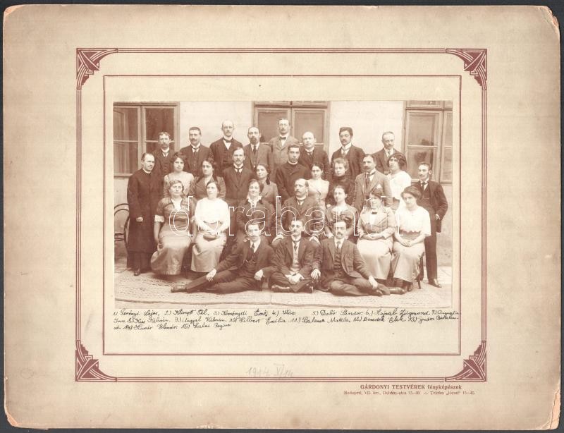 1914 Budapest, a Gárdonyi testvérek felvétele, feliratozva és datálva, vintage fotó, ezüst zselatinos fotópapíron, 12×20 cm, karton (a sarkokon sérült) 25×32,5 cm