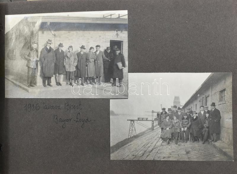 1919-1937 Orsován, Wien-Badenben, Vaskapunál és egyéb helyeken készült csoportképek (Bajor Lloyd Hajózási Rt.) látképek, feliratozva, vegyes méretben, albumba ragasztva<a href="https://www.darabanth.com/hu/gyorsarveres/425/kategoriak~Fotomuveszet/Fo
