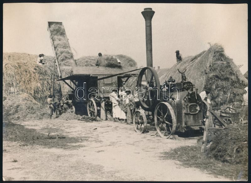 1925 Kozelka Tivadar (1885-1980): Betakarítás gőzgépekkel, pecséttel jelzett fotó, 17,5×24 cm<a href="https://www.darabanth.com/hu/gyorsarveres/423/kategoriak~Fotomuveszet/Foto~44/1925-Kozelka-Tivadar-1885-1980-Betakaritas-gozgepekkel-pecsettel-jelz