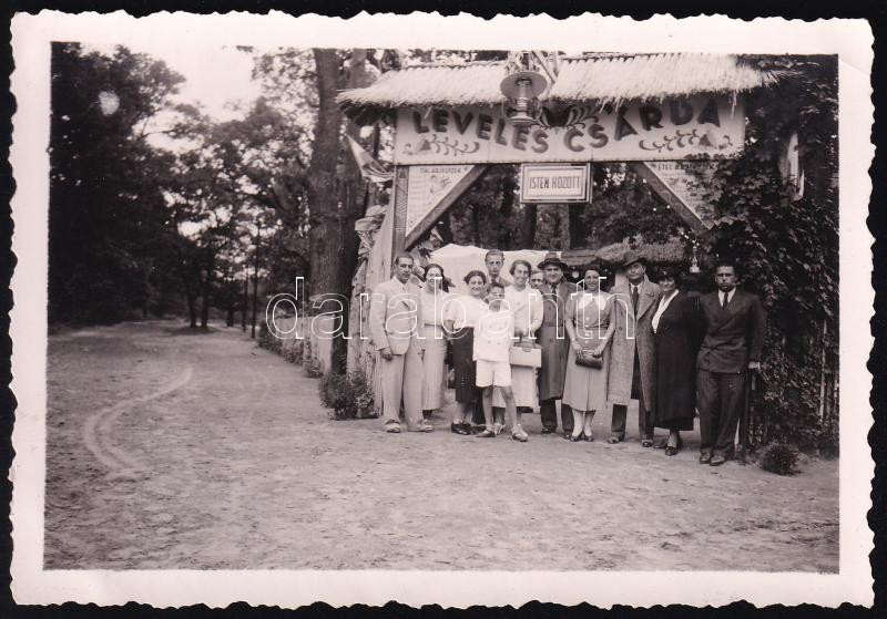 1937 Debrecen, Leveles Csárda bejárata vendégekkel, fotó, 6×9 cm<a href="https://www.darabanth.com/hu/gyorsarveres/438/kategoriak~Mutargy-papirregiseg-egyeb/Foto~500023/1937-Debrecen-Leveles-Csarda-bejarata-vendegekkel-foto-6C3979-cm~II2850222/?utm_