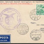 1937 Nemzetközi Balaton repülő csillagtúra fotólap a magyar csapattal, rajta Kalocsa-Pécs légijárat és egyéb repülőposta bélyegzésekkel 14×9 cm / International Balaton aeroplane tour with Hungarian team, with special cancellations
