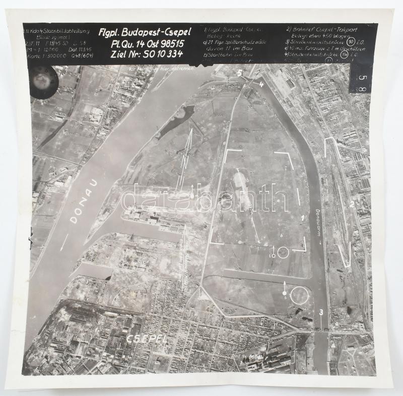 1945 Budapest, Csepel német katonai légi felderítő fotó 29×29 cm / German military scout photo
