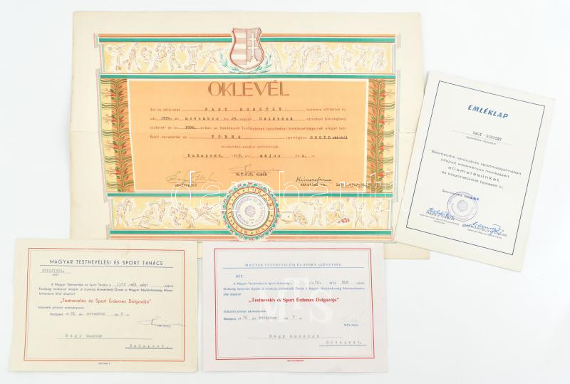 1957-1970. 4 db oklevél sport témában. Kis sérüléssel.<a href="https://www.darabanth.com/hu/gyorsarveres/439/kategoriak~Mutargy-papirregiseg-egyeb/Okmanyok~1000020/1957-1970-4-db-oklevel-sport-temaban-Kis-serulessel~II2878244/?utm_source=affiliate&u