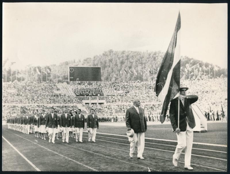 1960 Római Olimpia fotó, Zászló vivő, Simon János kosárlabdázó. 18×24 cm