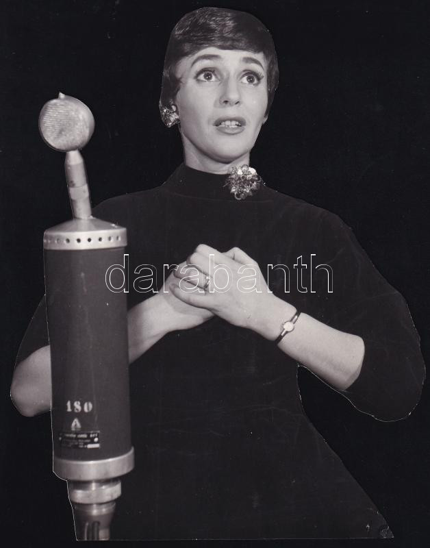 1961 Hölgy mikrofonnal, körbevágott sajtófotó, a hátoldalon feliratozott, pecséttel jelzett, 19×15 cm<a href="https://www.darabanth.com/hu/gyorsarveres/438/kategoriak~Mutargy-papirregiseg-egyeb/Foto~500023/1961-Holgy-mikrofonnal-korbevagott-sajtofot