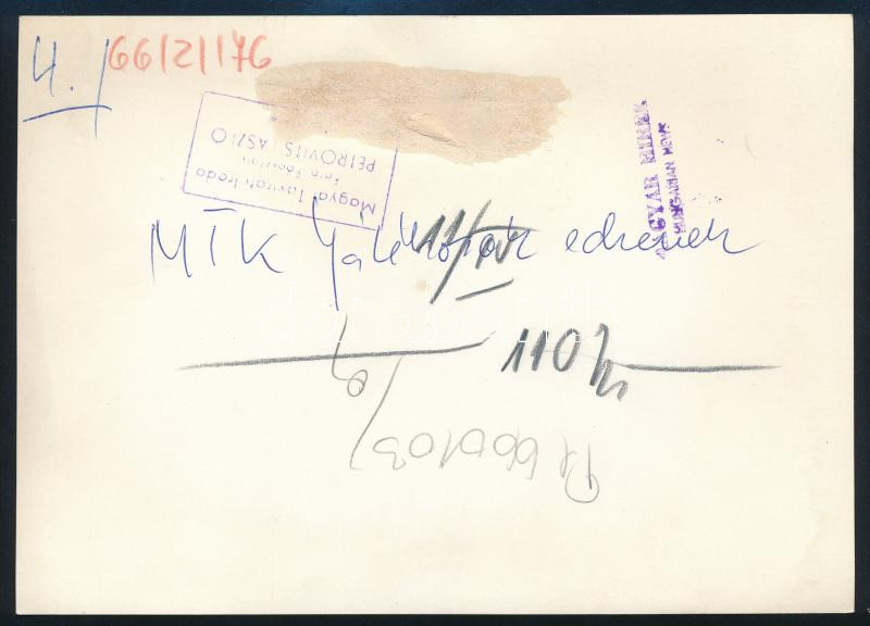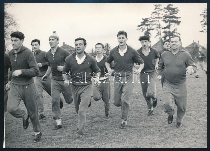 1966 Az MTK játékosai edzés közben, sajtófotó, a hátoldalon feliratozott, pecséttel jelzett, 18×13 cm