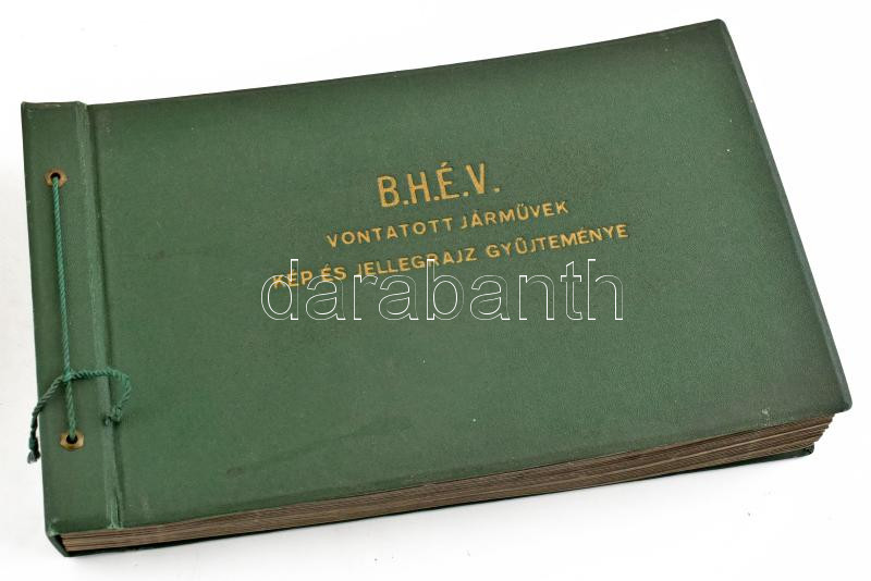 1968 A BHÉV vontatott járműveinek kép és jellegrajz gyűjteménye. 44 db fénykép (18×12 cm) az önálló BHÉV vonat és villamos hév kocsik részletes műszaki rajzaival, funkció szerinti csoportosításban. Műbőr kötésű mappában.