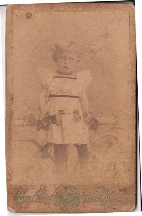 cca 1870-1900 Műtermi portréfotó egy kisgyermekről Uher Ödön Keszthely műterméből, 12×8 cm