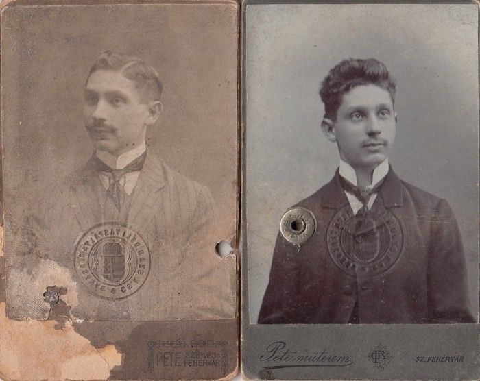 cca 1910 2db Vasuti igazolvány visit fotó, Pete Gyula műhelyéből Székesfehérvár 10.5×6.5cm