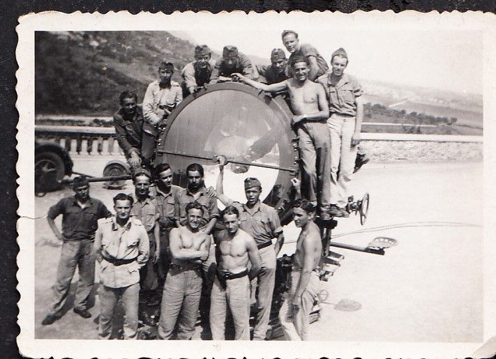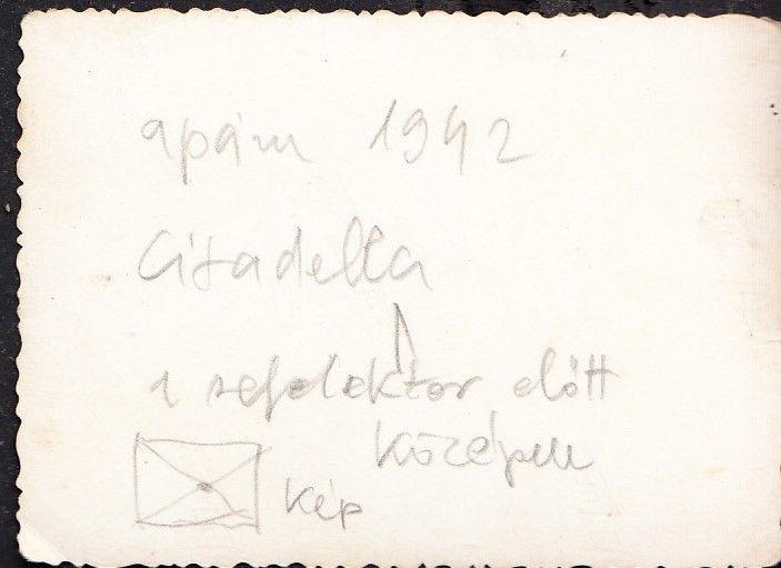 1942. Magyar katonák légvédelmi refrektórt szerelnek a Citadellán. 9×6.5cm