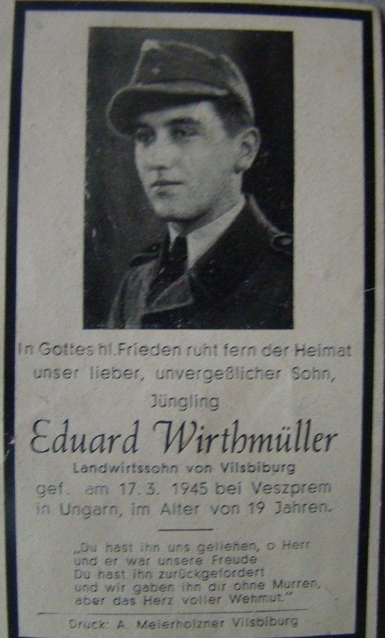 1945 Halotti értesítő Veszprémben elesett német katonáról