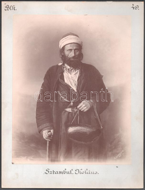 Berggren, Guillaume Gustave (1835-1920): Sztambulban Koldus. Albumin fotó kartonon Cholnoky Jenő földrajztudós és utazó feliratozásával 25×33 cm / Berggren, Guillaume Gustave (1835-1920): Beggar in Istanbul. Albumen photo on cardboard with captions by geographer and traveler Jenő Cholnoky