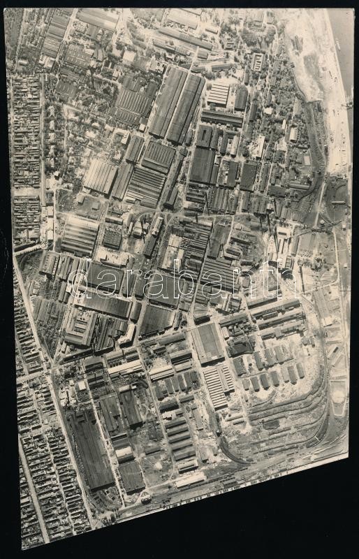 Budapest, Csepel, Weiss Manfréd Gyár, légi felvétel, 21×13 cm