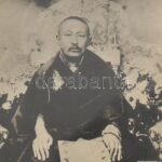 ca 1920 Thubten Choekyi Nyima (1883-1937), 9. pancsen láma, Buddhista főláma fotója, üvegezett keretben, 6×8,5 cm, külső méret: 13×15 cm / Photo of Budhist lama, Thubten Choekyi Nyima (1883-1937), the 9th Panchen lama, photo in glazed frame, 6×9 cm<