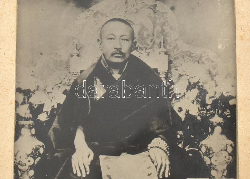 ca 1920 Thubten Choekyi Nyima (1883-1937), 9. pancsen láma, Buddhista főláma fotója, üvegezett keretben, 6×8,5 cm, külső méret: 13×15 cm / Photo of Budhist lama, Thubten Choekyi Nyima (1883-1937), the 9th Panchen lama, photo in glazed