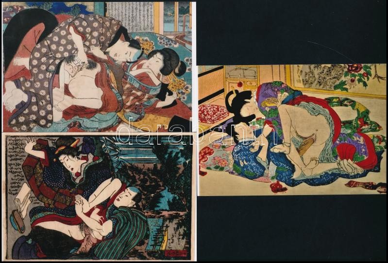 cca 1800-as évek, japán erotikus illusztrációk fotómásolata, 5 db mai nagyítás egy műgyűjtő hagyatékából, 10×15 cm<a href="https://www.darabanth.com/hu/gyorsarveres/423/kategoriak~Fotomuveszet/Foto~44/cca-1800-as-evek-japan-erotikus-illusztraciok-fo