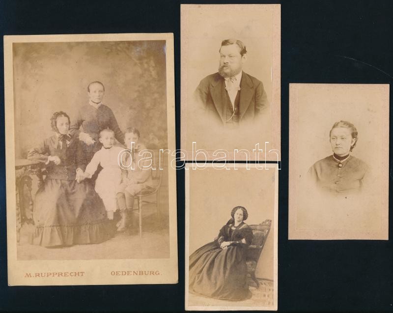 cca 1860 Soproni fotótörténeti lelet: 3 db vizitkártya, egy kabinetfotó (ázott)<a href="https://www.darabanth.com/hu/gyorsarveres/423/kategoriak~Fotomuveszet/Foto~44/cca-1860-Soproni-fototorteneti-lelet-3-db-vizitkartya-egy-kabinetfoto-azott~II26685