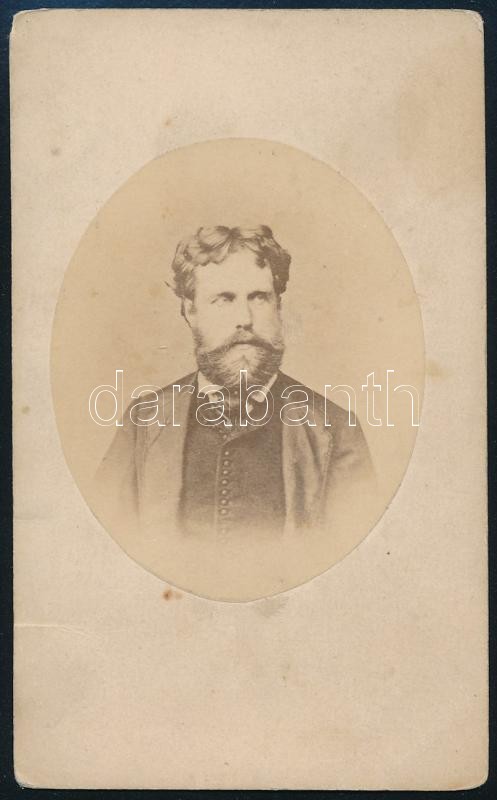 cca 1865-1870 gróf Keglevich Béla (1833-1896) cs. és kir. kamarás, főispán, országgyűlési képviselő, az Országos Erdészeti Egyesület első elnökének (1866-1875) portréfotója, keményhátú fotó, jelzetlen, a hátoldalán nevesítve, 10×6 cm