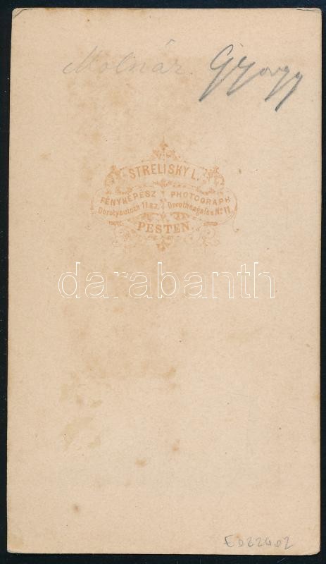 cca 1865 Molnár György (1830-1891) színész, rendező és színigazgató, a Budai népszínház megteremtőjének keményhátú fotója, Strelisky Lipót pesti műterméből, 10×6 cm