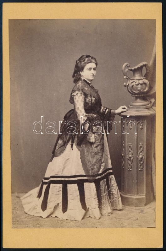 cca 1870 Ana Popescu (?) színésznő, keményhátú fotó Veress Ferenc (1832-1916) kolozsvári műterméből, 16×10,5 cm<a href="https://www.darabanth.com/hu/gyorsarveres/423/kategoriak~Fotomuveszet/Foto~44/cca-1870-Ana-Popescu-szineszno-kemenyhatu-foto-Vere