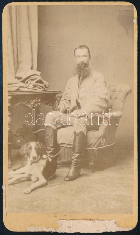 Cca 1870 Férfi portréja kutyájával, F. Kelemen Zágrábi műterméből. Vizitkártya.<a href="https://www.darabanth.com/hu/gyorsarveres/423/kategoriak~Fotomuveszet/Foto~44/Cca-1870-Ferfi-portreja-kutyajaval-F-Kelemen-Zagrabi-mutermebol-Vizitkartya~II26920