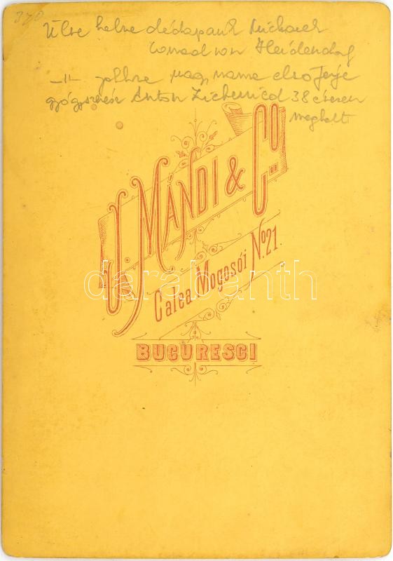 cca 1890 Michael Conrad von Heidenforf és Anton Zibrzid bukaresti gyógyszerészt ábrázoló kabinetfotó / Photo of Anton Zibrzid, a pharmacist from Bucharest. 11×16 cm<a href="https://www.darabanth.com/hu/gyorsarveres/423/kategoriak~Fotomuveszet/Foto~4