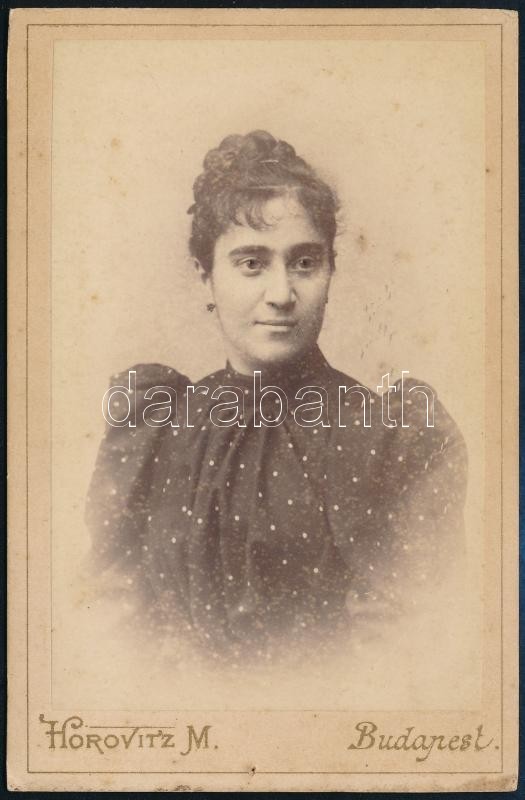 Cca 1892 Zakariás Irma portréja Horovitz M. budapesti műterméből. Vizitkártya.