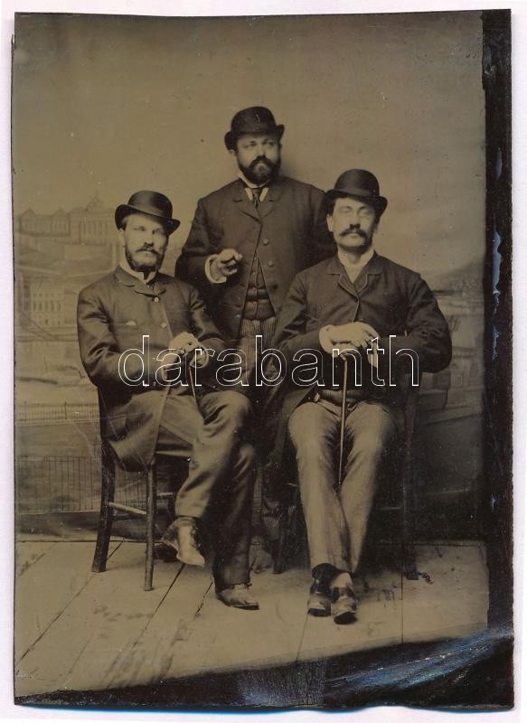 cca 1900 Három kalapos úr, ferrotípia, 9×6,5 cm<a href="https://www.darabanth.com/hu/gyorsarveres/423/kategoriak~Fotomuveszet/Foto~44/cca-1900-Harom-kalapos-ur-ferrotipia-9×6-5-cm~II2693928/?utm_source=affiliate&utm_medium=mutargy&utm_campaign=allan