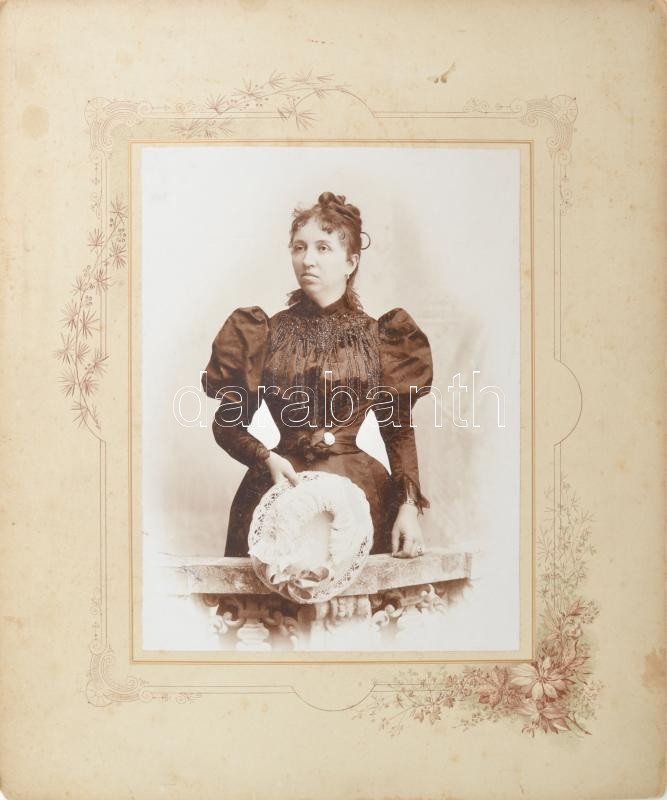 cca 1900 Hölgy nagyméretű portréja (Vámossy Mihályné), keményhátú fotó Antal Béla zalaegerszegi műterméből, hátoldalán feliratozva, pecséttel jelzett, 26×19,5 cm (teljes méret: 42×35,5 cm)<a href="https://www.darabanth.com/hu/gyorsarveres/423/katego
