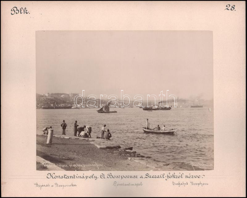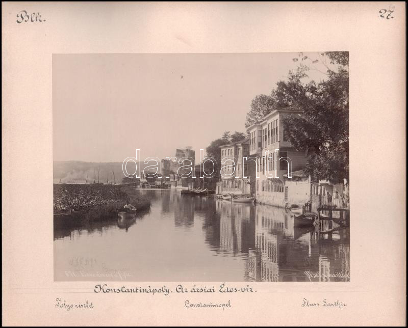 cca 1900 Konstantinápoly Az Ázsiai édes víz / Boszporusz a Sezail fokról kétoldalas albumin fotók kartonon Sébah & Joaillier jelzett felvétele Cholnoky Jenő földrajztudós és utazó feliratozásával 36×30 cm / cca 1900 Constantinople (Istanbul) river / Bosphorus from the Cape Sezail. Double sided albumin photos by Sébah & Joaillier with Hungarian traveler’s caption 36×30