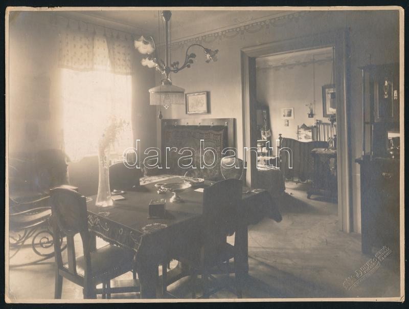 cca 1910 Kúria belső tere, 4 db kartonra ragasztott fotó a Dunky Fivérek műterméből, hidegpecséttel jelzett, sérülésekkel, 17×23 cm