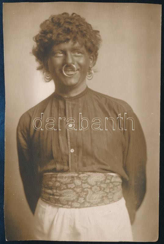 cca 1910 Szerecsennek öltözött férfi portréja, fotó, 14×9 cm<a href="https://www.darabanth.com/hu/gyorsarveres/423/kategoriak~Fotomuveszet/Foto~44/cca-1910-Szerecsennek-oltozott-ferfi-portreja-foto-14C3979-cm~II2687168/?utm_source=affiliate&utm_medi